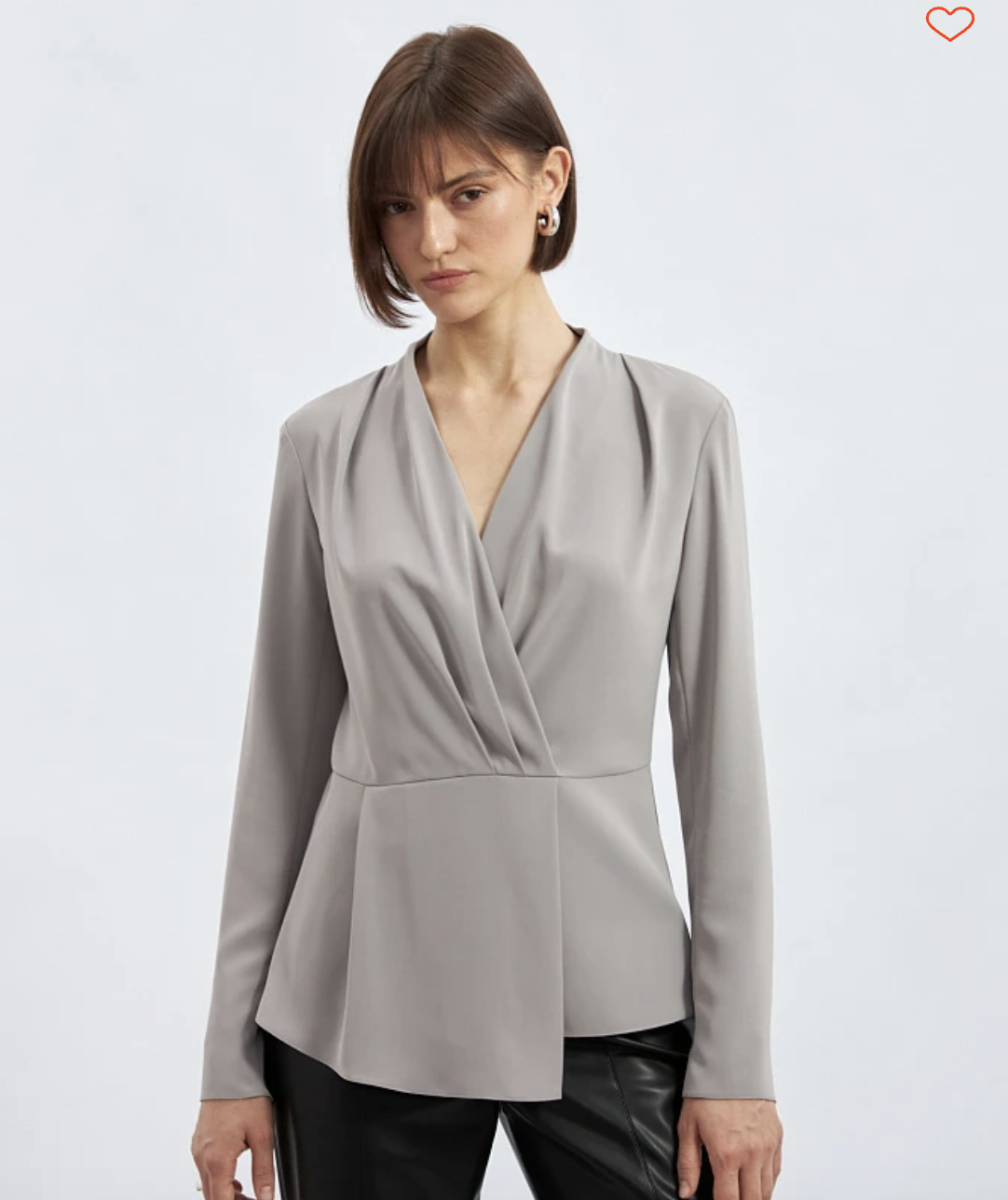 Блузка умеренного объёма, полуприлегающего силуэта, длиной до линии бедер.